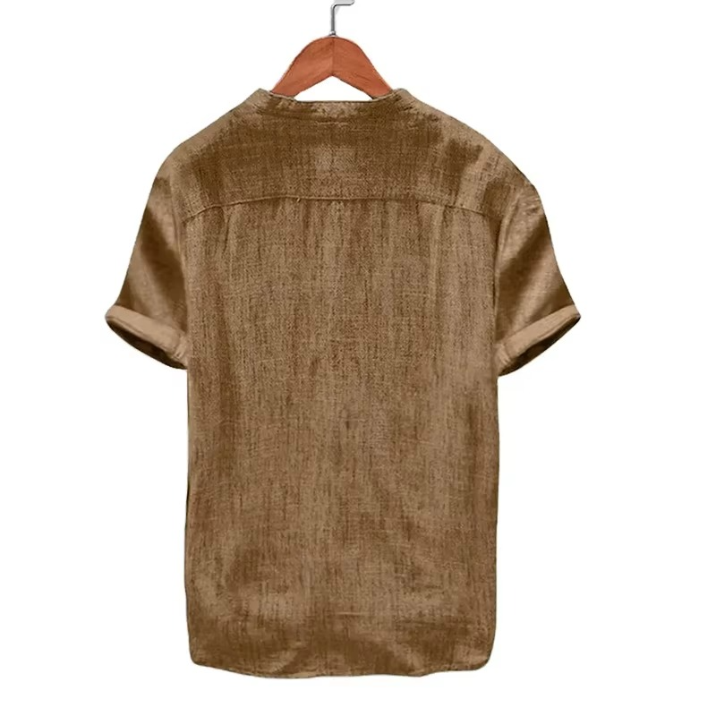 High Quality Solid Color Button up Shirt Fasion Mens Short Sleeve Cotton Linen Shirts image